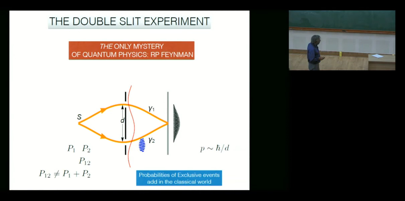 When quantum physicists say that in QM the probabilities do not sum for mutually exclusive events, so in the two-slit: P12≠P1+P2 or,