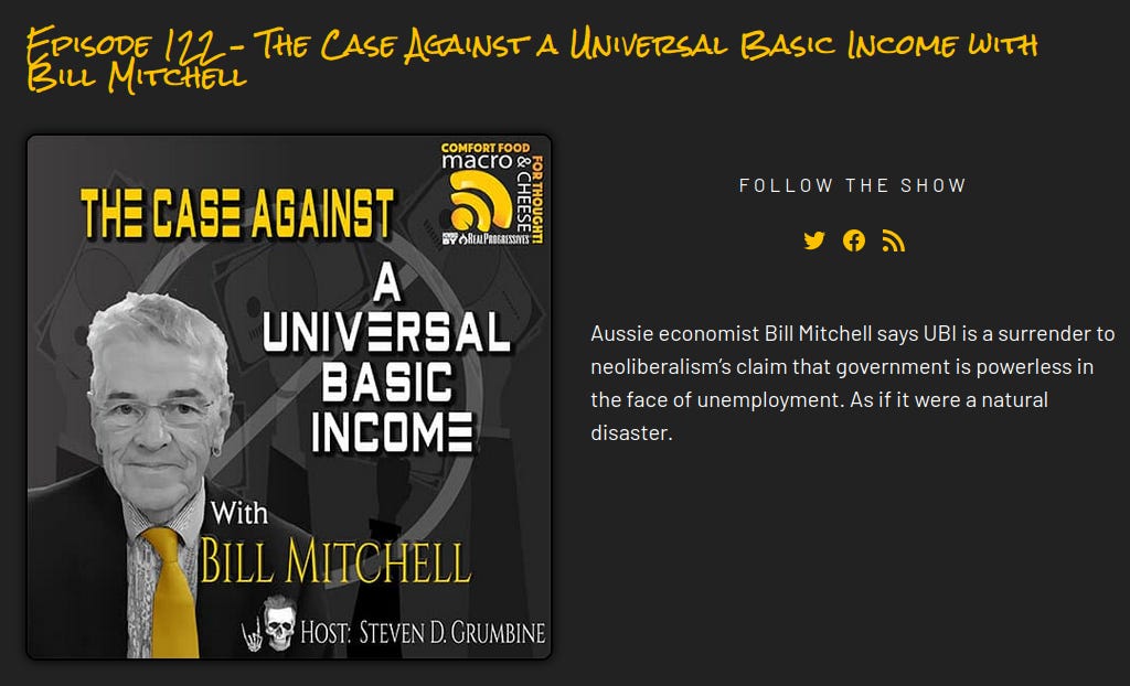 This should tell you more than just the fact techno-fascists support “UBI”. Here is Bill Mitchell on an old RealProgressives podcast fall-out,